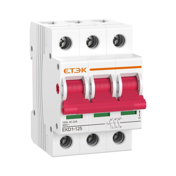 EKM1-125系列小型隔離開關適用于交流50Hz,額定電壓230V/400V,額定電流至125A的商業(yè)辦公樓、民用住宅及?般工業(yè)用途的終端配電線路中,作為終端組合電器中的總開關,也可用于不頻繁控制各類小功率電器和照明。