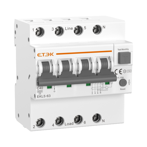 EKL5-63電子式剩余電流動(dòng)作斷路器適用于交流50/60Hz,額定電壓兩極230V,四極415V,額定電流?63A的商業(yè)辦公樓民用住宅及?般工業(yè)用途的終端配電線路中,對線路提供過載、短路保護(hù)和漏電保護(hù),也可在正常情況下對線路進(jìn)行不頻繁轉(zhuǎn)換操作。該產(chǎn)品具備漏電復(fù)位按鈕功能,能夠直接判斷短路過載、漏電觸發(fā)跳閘、人工分合閘等故障類別,幫助用戶識(shí)別并鎖定線路故障點(diǎn)進(jìn)行快速維修,具有安全、可靠、簡便等特點(diǎn)。
