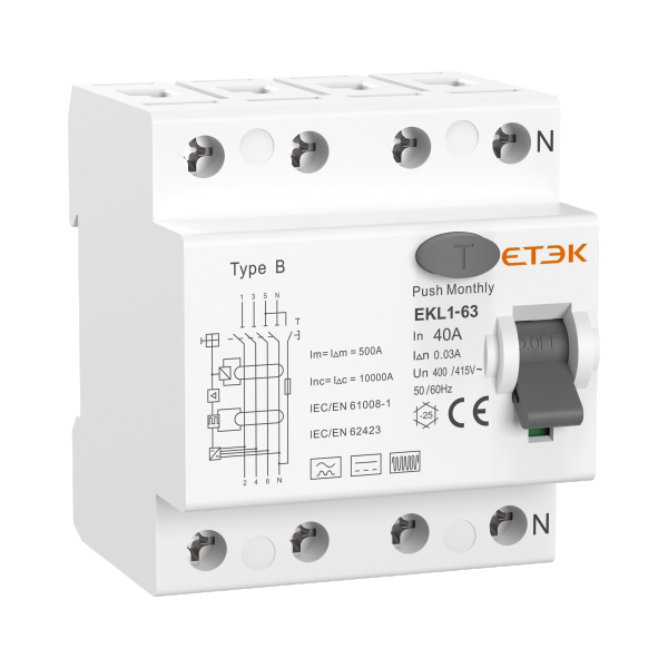 EKL6-100B B型電磁式漏電斷路器適?于交流50Hz,額定電壓?415V,額定電流至63A電路中,用于檢測交流漏電、脈動直流漏電、平滑直流漏電、復合波漏電和最高至1kHz?頻漏電。當人身觸電或電路泄露電流超過規定值時,漏電斷路器在極短的時間內自動切斷故障電源,保護人身及用電設備安全,斷路器亦可在正常情況下作為線路的不頻繁切換操作之用。